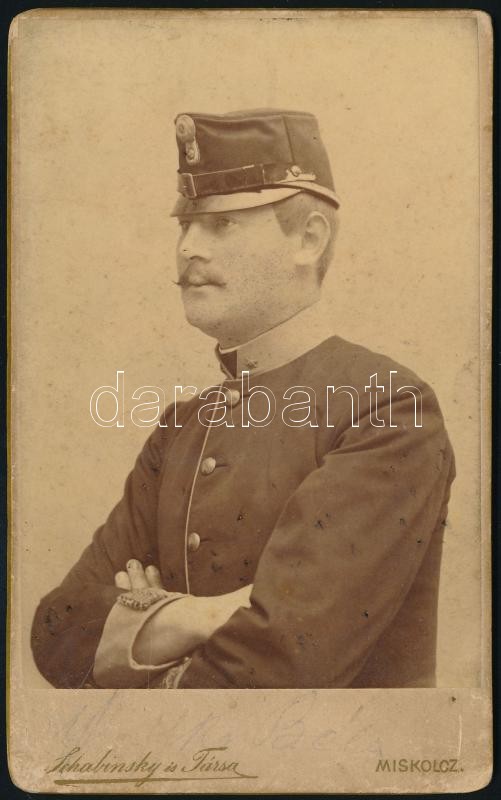 cca 1890 Katonaportré, keményhátú fotó Schabinsky és Társa műterméből,... https://www.darabanth.com/de/372-Fernauktion/372.0/Kunst-Dokumente-andere-Sammelgebiete/Militaria~27/cca-1890-Katonaportre-kemenyhatu-foto-Schabinsky-es-Tarsa-mutermebol-10-5C3976-5-cm~II2169130