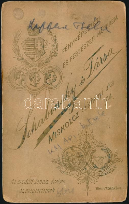 Beschreibung: cca 1890 Katonaportré, keményhátú fotó Schabinsky és Társa műterméből, 10,5×6,5 cm