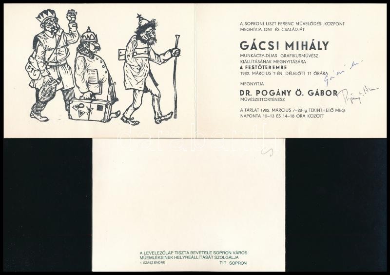 Beschreibung: Gácsi Mihály és Szász Endre kiállítási meghívója, egyiken Gácsi Mihály és Dr. Pogány Ö. Gábor aláírásával