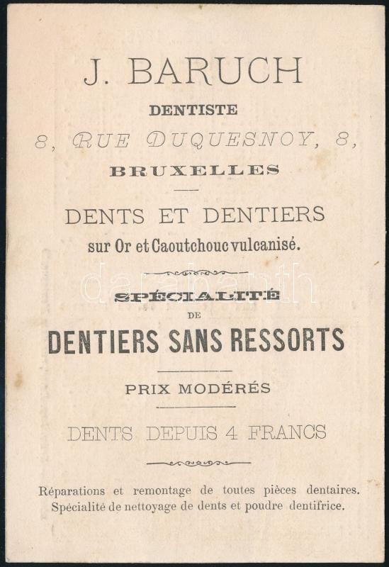 1875 J. Baruch brüsszeli fogorvos reklámos kártyanaptára / Calendar ca... https://www.darabanth.com/de/372-Fernauktion/372.0/Kunst-Dokumente-andere-Sammelgebiete/Werbungen~21/1875-J-Baruch-brusszeli-fogorvos-reklamos-kartyanaptara-Calendar-card-of-Brussel-dentist-8x12~II2169878
