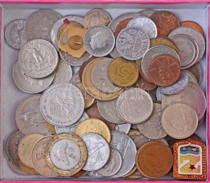 Beschreibung: 452,79g vegyes magyar és külföldi fémpénz, közte svájci frank is T:vegyes