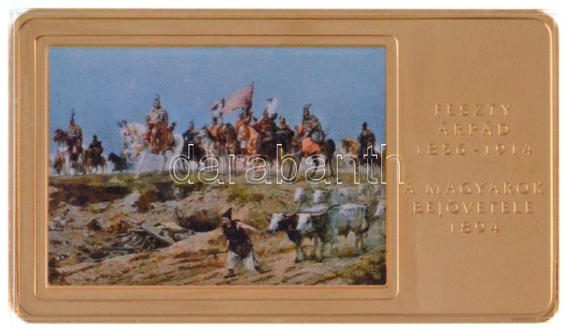 Beschreibung: 2014. "A magyar festészet remekművei / Feszty Árpád 1856-1914. - A magyarok bejövetele 1894." aranyozott, multicolor Cu emlékérem (35x60mm) T:PP
