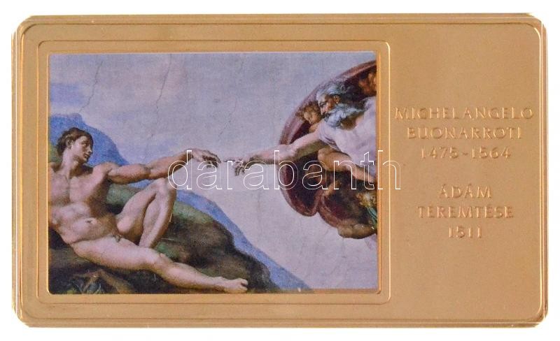 Beschreibung: DN "A világ leghíresebb festményei / Michelangelo Buonarroti 1475-1564. - Ádám teremtése 1511." aranyozott, multicolor Cu emlékérem (35x60mm) T:PP