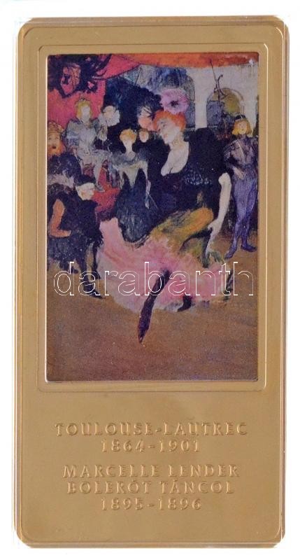 Beschreibung: DN "A világ leghíresebb festményei / Toulouse-Lautrec 1864-1901. - Marcelle Lender bolerot táncol 1895-1896." aranyozott, multicolor Cu emlékérem (35x60mm) T:1 (eredetileg PP) ujjlenyomatok