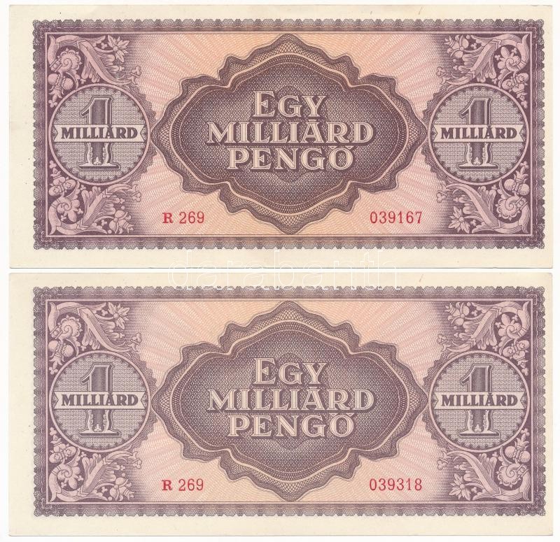 1946. 1.000.000.000P (5x) közte 3db sorszámkövető, mind látványosan ba... https://www.darabanth.com/de/372-Fernauktion/372.0/Numismatik/Ungarische-Banknoten~1500007/1946-1000000000P-5x-kozte-3db-sorszamkoveto-mind-latvanyosan-balra-tolodott-nyomattal-~II2171830