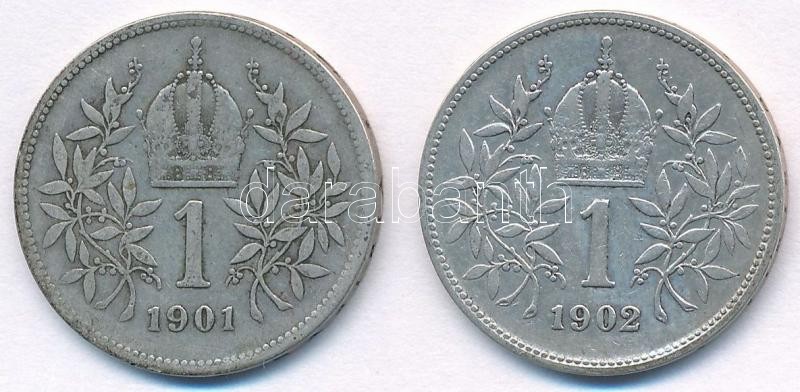 Beschreibung: Ausztria 1901-1902. 1K Ag "Ferenc József" (2x) T:2-