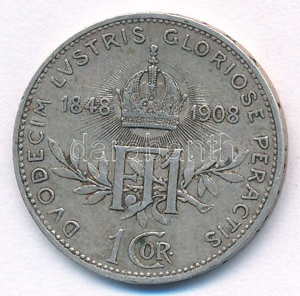 Ausztria 1908. 1K Ag "Ferenc József - Jubileum" T:2 patina Austria 190... https://www.darabanth.com/de/372-Fernauktion/372.0/Numismatik/Weltweit-Munzen~1500013/Ausztria-1908-1K-Ag-Ferenc-Jozsef-Jubileum-T2-patina-Austria-1908-1-Corona-Ag-Franz-Joseph-~II2168372