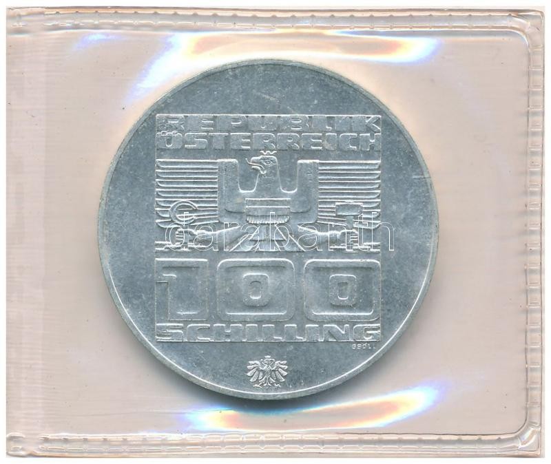 Austria 1976. 100 Schilling Ag "Winter Olympics Innsbruck / Skier" in plastic case C:AU