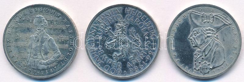 Beschreibung: NSZK 1984J 5M Cu-Ni "Felix Bartholdy születésének 175. évfordulója" + 1986D 5M Cu-Ni "600 éves a Heidelbergi Egyetem" + 1986F 5M Cu-Ni "Nagy Frigyes halálának 200. évfordulója" T:1-