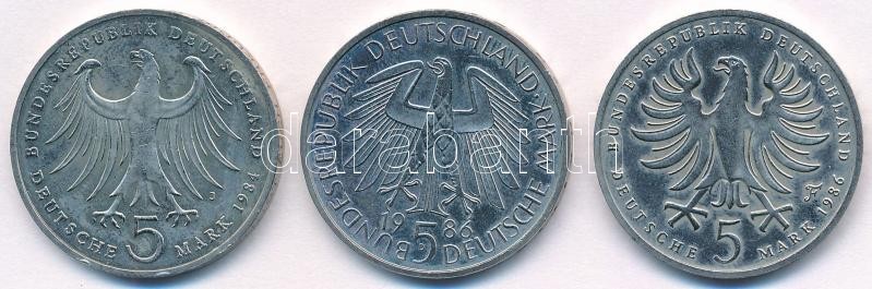 FRG 1984J 5 Mark Cu-Ni "175th Anniversary - Birth of Felix Bartholdy" + 1986D 5 Mark Cu-Ni "600th Anniversary - Heidelberg University" + 1986F "200th Anniversary - Death of Frederick the Great" C:AU Krause KM#161,164,165