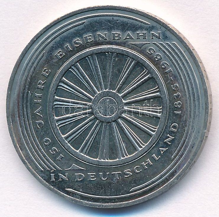 NSZK 1985G 5M Cu-Ni "150 éves a Német Vasút" T:1- FRG 1985G 5 Mark Cu-... https://www.darabanth.com/de/372-Fernauktion/372.0/Numismatik/Weltweit-Munzen~1500013/NSZK-1985G-5M-Cu-Ni-150-eves-a-Nemet-Vasut-T1-FRG-1985G-5-Mark-Cu-Ni-150th-Anniversary-Ger~II2173116