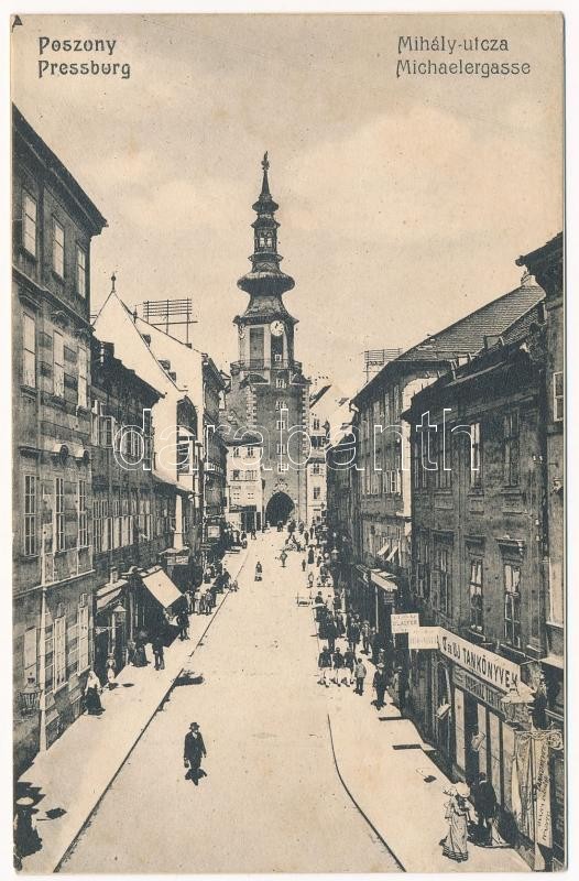 Pozsony, Pressburg, Bratislava; Mihály utca, Ó és Új tankönyvek, Schwa... https://www.darabanth.com/de/373-Fernauktion/373.0/Ansichtskarten/Slowakei~1500006/Pozsony-Pressburg-Bratislava-Mihaly-utca-O-es-Uj-tankonyvek-Schwarz-testverek-es-Dr-Lau~II2183683