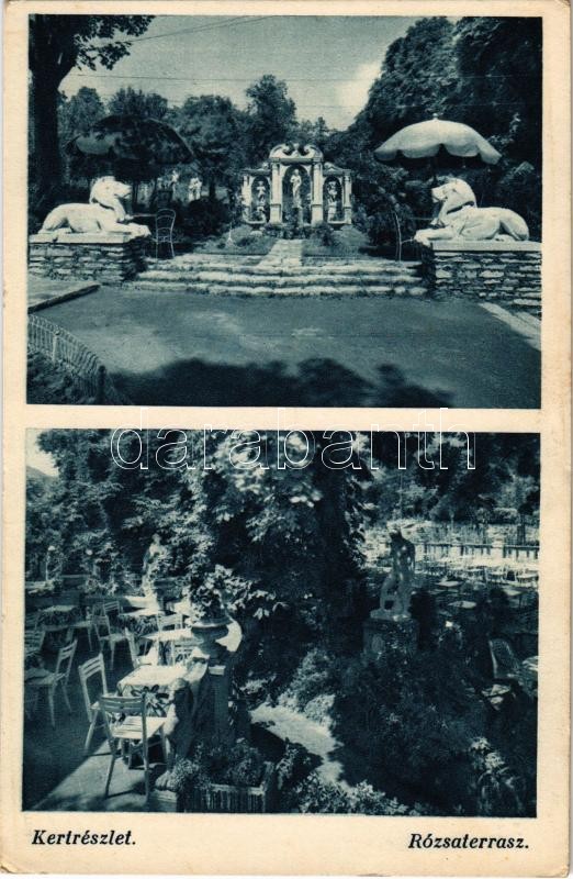 Beschreibung: Budapest II. Hűvösvölgy, Auguszt Pavillon, rózsaterasz, kert, étterem. Hidegkúti út 22. (EK)