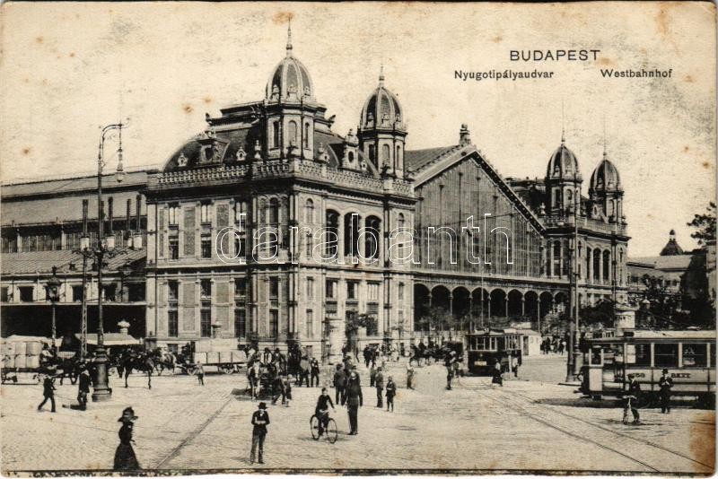Budapest VI. Nyugati pályaudvar, villamosok (ragasztónyom / gluemark) https://www.darabanth.com/de/373-Fernauktion/373.0/Ansichtskarten/Ungarn~1500004/Budapest-VI-Nyugati-palyaudvar-villamosok-ragasztonyom-gluemark~II2180865