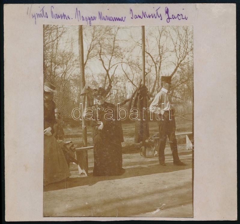 cca 1900 Nemesi családok (Jankovich, Vojnits) tagjai a teniszpálya mel... https://www.darabanth.com/de/373-Fernauktion/373.0/Fotografie/Foto~500021/cca-1900-Nemesi-csaladok-Jankovich-Vojnits-tagjai-a-teniszpalya-mellett-kartonra-ragasztott-f~II2181811