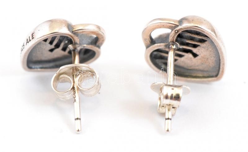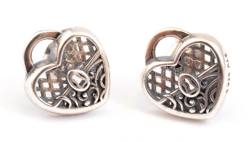 Beschreibung: Ezüst(Ag) szívecskés lakat fülbevalópár, Pandora jelzéssel, nettó: 2,19 g