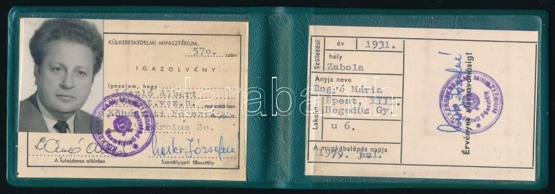 1979 Külkereskedelmi Minisztérium arcképes igazolvány https://www.darabanth.com/de/373-Fernauktion/373.0/Kunst-Dokumente-andere-Sammelgebiete/Dokument~500018/1979-Kulkereskedelmi-Miniszterium-arckepes-igazolvany~II2182178