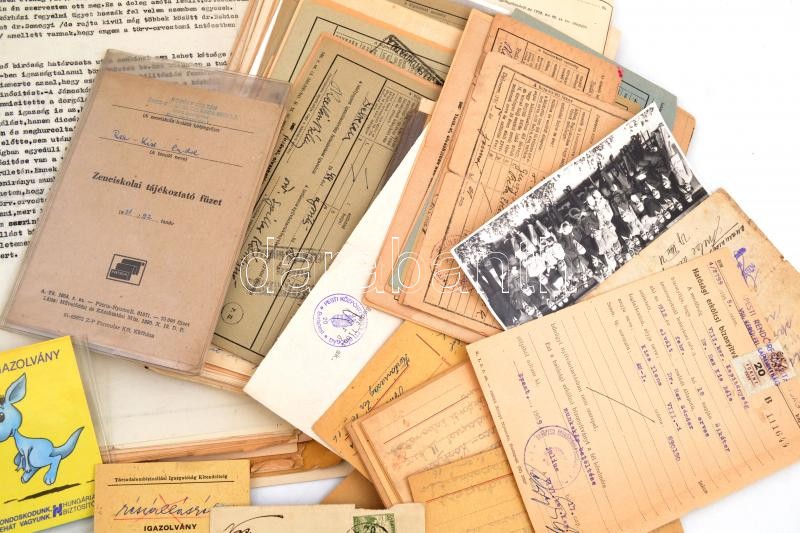 Beschreibung: Rex-Kiss Béla orvos és fia (építész) iratai, levelei, oklevelek, stb., több tucat