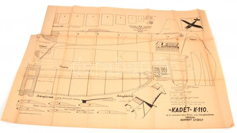 cca 1940-46 Aeromechanika repülőgépmodel-terv, K-110 "kadét" gumimotor... https://www.darabanth.com/de/373-Fernauktion/373.0/Kunst-Dokumente-andere-Sammelgebiete/Drucksachen~500031/cca-1940-46-Aeromechanika-repulogepmodel-terv-K-110-kadet-gumimotoros-modelhez-tervezte-Kop~II2178419