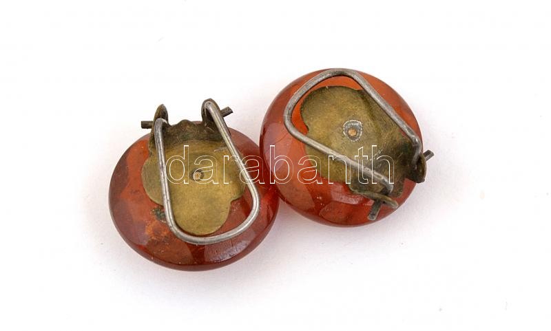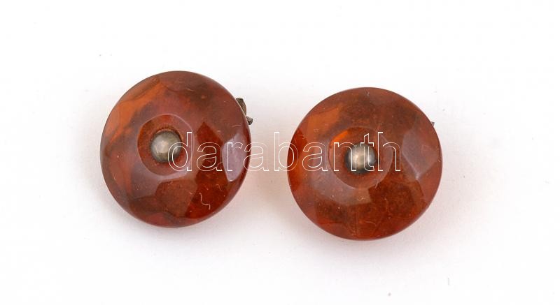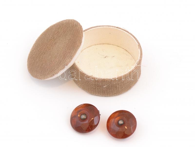 Beschreibung: Rég borostyán fülbevaló pár, szövettel borított kis dobozban