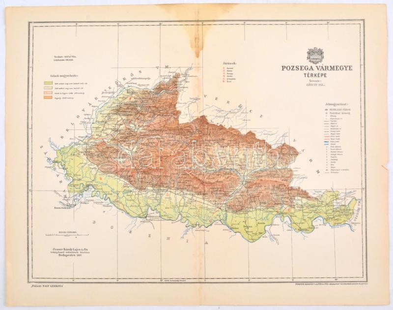 1897 Pozsega vármegye térképe,1:570.000, tervezte: Gönczy Pál, Pallas ... https://www.darabanth.com/de/373-Fernauktion/373.0/Kunst-Dokumente-andere-Sammelgebiete/Landkarten~500029/1897-Pozsega-varmegye-terkepe-1570000-tervezte-Gonczy-Pal-Pallas-Nagy-Lexikona-Bp-Posne~II2182032