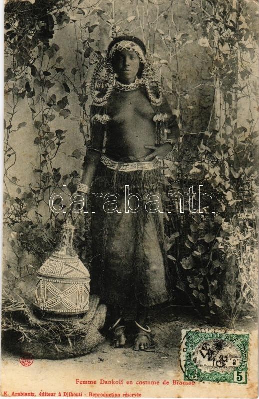 1907 Femme Dankoli en costume de Brousse / Dankoli woman in bush costu... https://www.darabanth.com/de/374-Fernauktion/374.0/Ansichtskarten/Folklore~2000073/1907-Femme-Dankoli-en-costume-de-Brousse-Dankoli-woman-in-bush-costume-half-naked-woman-African~II2190823