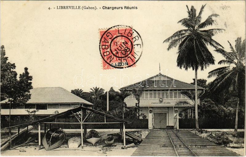 Libreville, Chargeurs Réunis / coast, boats https://www.darabanth.com/de/374-Fernauktion/374.0/Ansichtskarten/Gabon~2000028/Libreville-Chargeurs-Reunis-coast-boats~II2191335