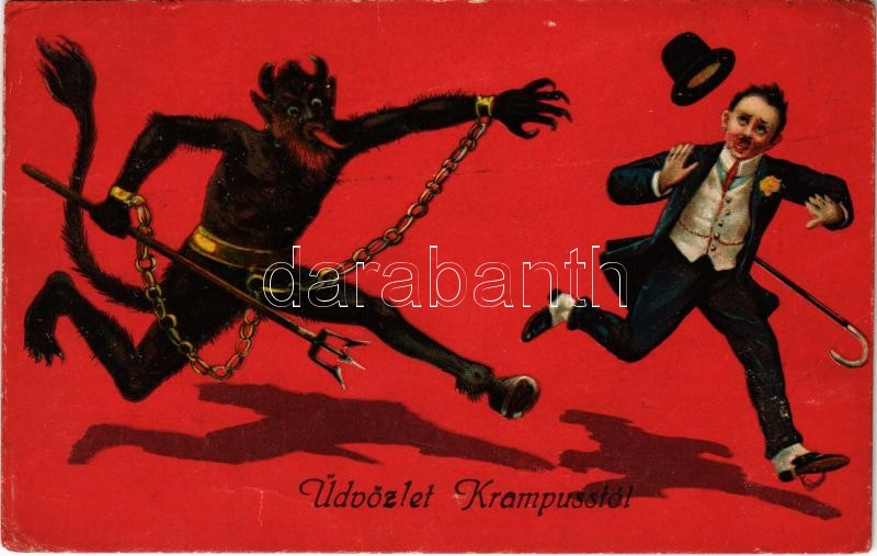 1917 Üdvözlet Krampusstól! / Krampus art postcard. EAS. 17543-4. litho... https://www.darabanth.com/de/374-Fernauktion/374.0/Ansichtskarten/Krampus~2000085/1917-Udvozlet-Krampusstol-Krampus-art-postcard-EAS-17543-4-litho-EK~II2190451