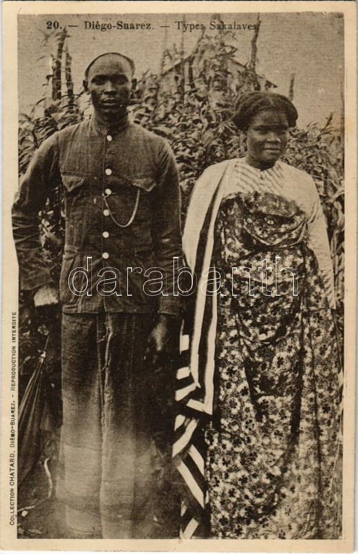 Antsiranana, Diégo-Suarez; Types Sakalaves / native couple, Madagascar... https://www.darabanth.com/de/374-Fernauktion/374.0/Ansichtskarten/Madagaskar~2000048/Antsiranana-Diego-Suarez-Types-Sakalaves-native-couple-Madagascar-folklore~II2174050