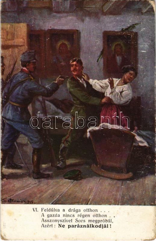 Beschreibung: 1915 Feldúlva a drága otthon... Ne paráználkodjál! / WWI K.u.K. military art postcard. A.F.W III/2. s: A. Setkowicz (EK)