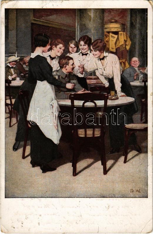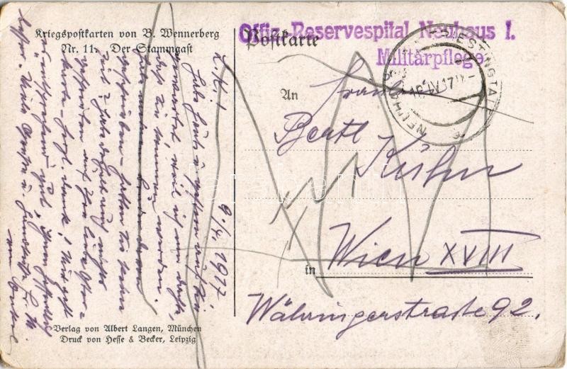 1917 Der Stammgast. Kriegspostkarten von B. Wennerberg Nr. 11. / WWI German military art postcard s: B. Wennerberg + Offiz.Reservespital Neuhaus I. Militärpflege (EK)