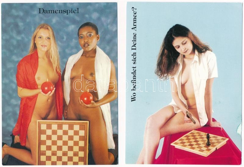 6 db MODERN sakk motívumlap: közte pár erotikus / 6 modern chess motiv... https://www.darabanth.com/de/374-Fernauktion/374.0/Ansichtskarten/Moderne-Postkartensammlungen-Lose~2000003/6-db-MODERN-sakk-motivumlap-kozte-par-erotikus-6-modern-chess-motive-postcards-some-erotic~II2185723