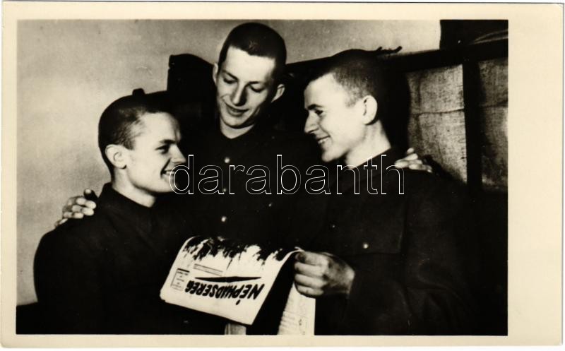 Bajtársi szellem fűzi egybe Néphadseregünk katonáit. Művészeti Alkotás... https://www.darabanth.com/de/374-Fernauktion/374.0/Ansichtskarten/Propaganda-Politik~2000091/Bajtarsi-szellem-fuzi-egybe-Nephadseregunk-katonait-Muveszeti-Alkotasok-Hungarian-People~II2186607