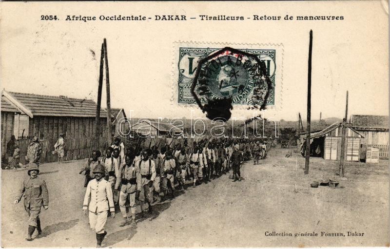 Dakar, Tirailleurs, Retour de manoeuvres / return of colonial artiller... https://www.darabanth.com/de/374-Fernauktion/374.0/Ansichtskarten/Senegal~2000060/Dakar-Tirailleurs-Retour-de-manoeuvres-return-of-colonial-artillery~II2187643