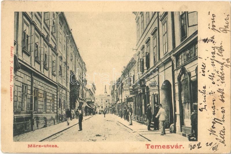 1902 Temesvár, Timisoara; März utca, Reisinger Károly, Pall üzlete. Ra... https://www.darabanth.com/de/374-Fernauktion/374.0/Ansichtskarten/Siebenburgen~2000005/1902-Temesvar-Timisoara-Marz-utca-Reisinger-Karoly-Pall-uzlete-Raschka-kiadasa-street-vi~II2112576