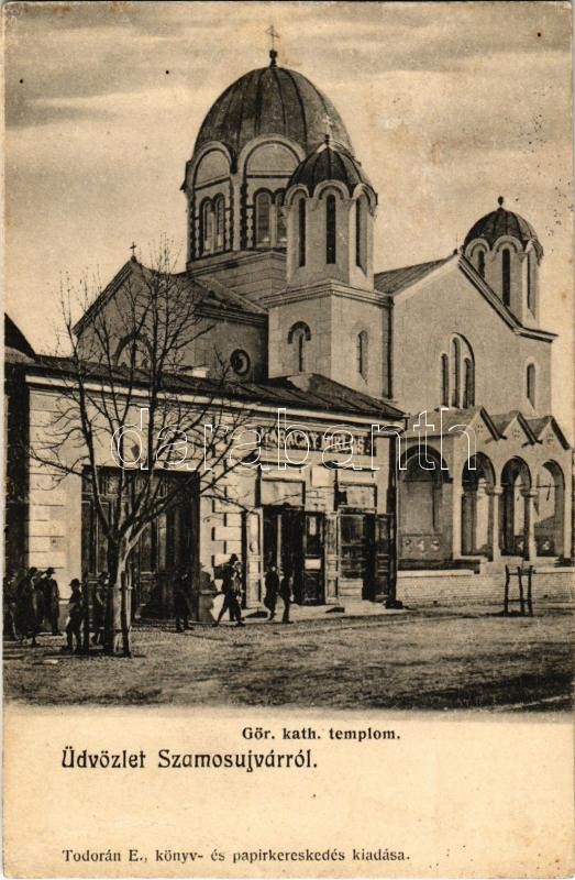 Beschreibung: 1908 Szamosújvár, Gherla; Görög katolikus templom. Haragay Miklós üzlete / Greek Catholic church, shop (fl)