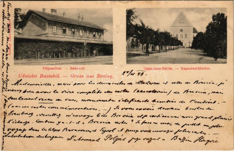 1899 Bazin, Bösing, Bözing, Pezinok; pályaudvar, vasútállomás, Capucin... https://www.darabanth.com/de/374-Fernauktion/374.0/Ansichtskarten/Slowakei~2000006/1899-Bazin-Bosing-Bozing-Pezinok-palyaudvar-vasutallomas-Capucinus-zarda-Kautny-Imre-k~II2184716