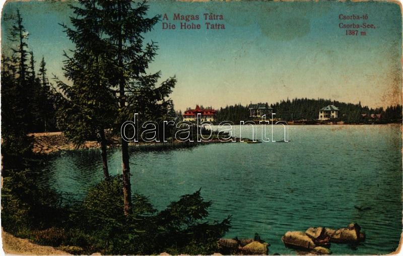 Tátra, Tatry; Csorbai-tó / Strbské pleso / lake https://www.darabanth.com/de/374-Fernauktion/374.0/Ansichtskarten/Slowakei~2000006/Tatra-Tatry-Csorbai-to-Strbske-pleso-lake~II1969900