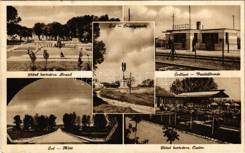 1937 Érd, Országzászló, műút, Diósd kertvárosi strand, fürdőzők, Érdli... https://www.darabanth.com/de/374-Fernauktion/374.0/Ansichtskarten/Ungarn~2000004/1937-Erd-Orszagzaszlo-muut-Diosd-kertvarosi-strand-furdozok-Erdliget-vasutalloma~II2187557