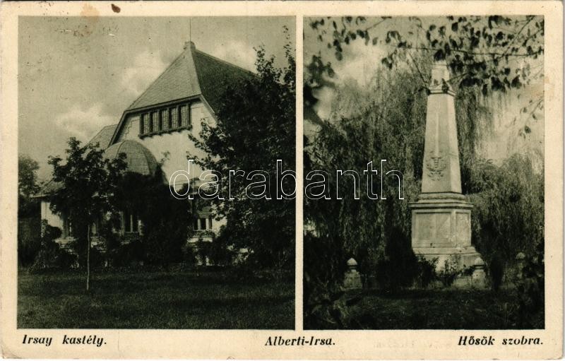 1940 Albertirsa, Irsay kastély, Hősök szobra, emlékmű. Hangya Szövetke... https://www.darabanth.com/de/374-Fernauktion/374.0/Ansichtskarten/Ungarn~2000004/1940-Albertirsa-Irsay-kastely-Hosok-szobra-emlekmu-Hangya-Szovetkezet-kiadasa-EK~II2187582