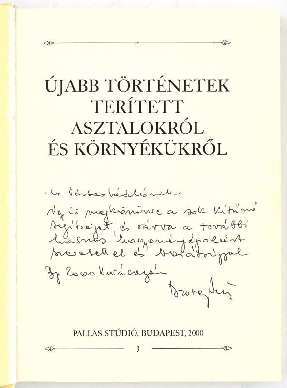 [Draveczky Balázs] Balázs mester: Újabb történetek terített asztalokról és környékükről. Bp., 2000., Pallas Stúdió. Fekete-fehér fotókkal illusztrált. Kiadói kartonált papírkötés. A szerző, Draveczky Balázs (1938-2003) által dedikált.