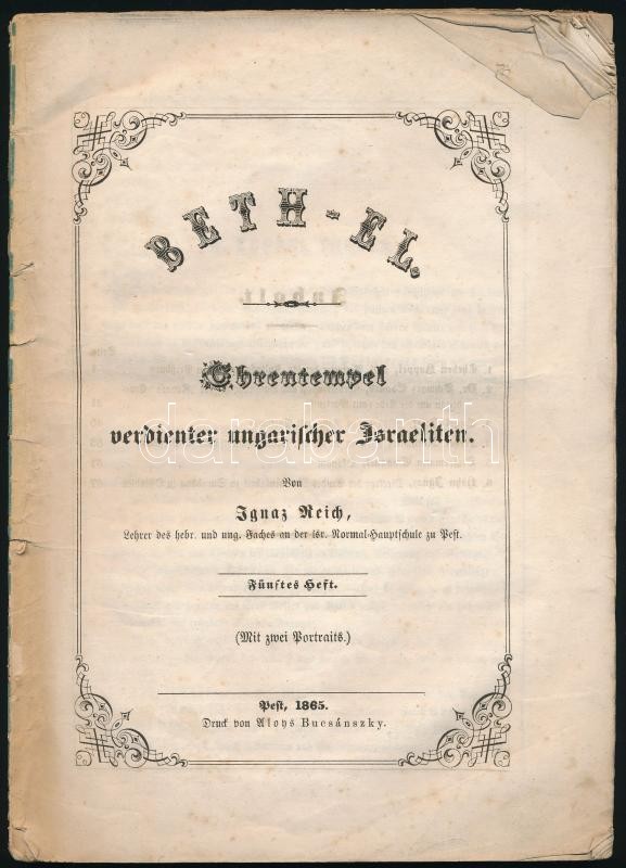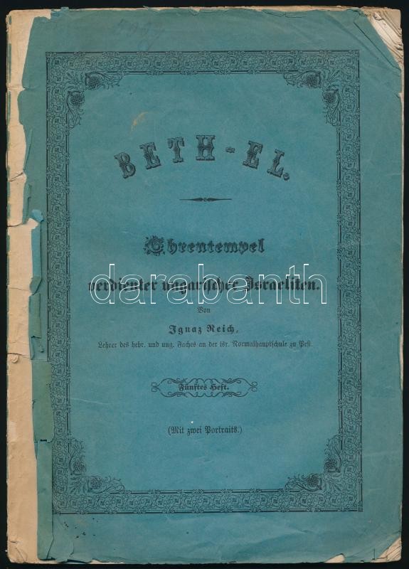Ignaz Reich: Beth-El. Ehrentempel verdienter ungarischer israeliten. F... https://www.darabanth.com/de/374-Fernauktion/374.0/Bucher/Bucher-Judaica~1000017/Ignaz-Reich-Beth-El-Ehrentempel-verdienter-ungarischer-israeliten-Funftes-Heft-Kiadoi-papirkC3~II2186733