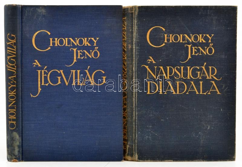 Cholnoky Jenő: A Föld titkai I. A napsugár diadala. 107 kép és 67 ábra a szövegben. Bp., 1930, Singer és Wolfner. Kiadói aranyozott egészvászon sorozatkötésben. Kopottas állapotban, tulajdonosi névbejegyzéssel + Cholnoky Jenő: A Föld titkai II. kötet: Jégvilág. 67 kép és 14 ábra a szövegben. Második, átdolgozott kiadás. Bp., 1930, Singer és Wolfner. Kiadói aranyozott egészvászon sorozatkötésben. Enyhén kopottas állapotban.