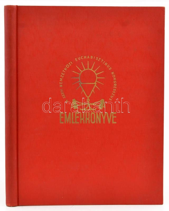 A XXXIV. Nemzetközi Eucharisztikus Kongresszus Emlékkönyve. Közrebocsátja a Kongresszus Előkészítő Főbizottsága. Bp., 1938, Szent István Társulat Kiadása. Kiadói egészvászon kötés, hátsó kötéstábla kissé foltos, egyébként jó állapotban.
