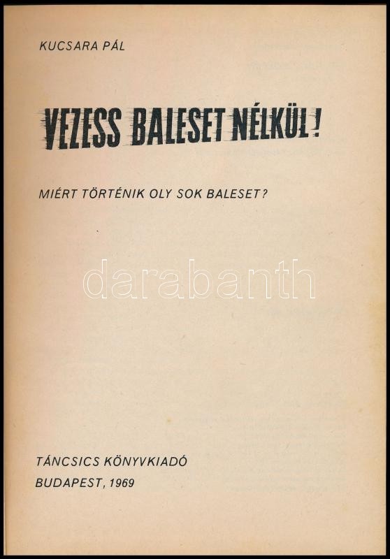 Kucsara Pál: Vezess baleset nélkül! Miért történik oly sok baleset? Bp... https://www.darabanth.com/de/374-Fernauktion/374.0/Bucher/Bucher-Technik~1000015/Kucsara-Pal-Vezess-baleset-nelkul-Miert-tortenik-oly-sok-baleset-Bp-1969-Tancsics-Kia~II2190035