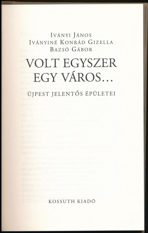 Iványi János-Iványiné Konrád Gizella-Bazsó Gábor: Volt egyszer egy város... Újpest jelentős épületei. Bp.,2009.,Kossuth. Fekete-fehér fotókkal illusztrált. Három melléklettel. Kiadói kartonált papírkötés.