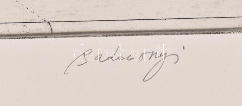 Beschreibung: Badacsonyi Sándor (1949-2016): Könyves Kálmán magyar király, rézkarc, papír, jelzett, sérült, 39×29 cm