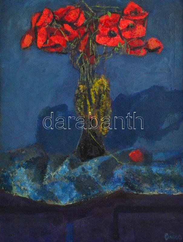 Beschreibung: Béres Jenő (1912-1981): Pipacsok. Olaj, vászon, jelzett, hátoldalán a festő autográf feliratával, 80x60 cm