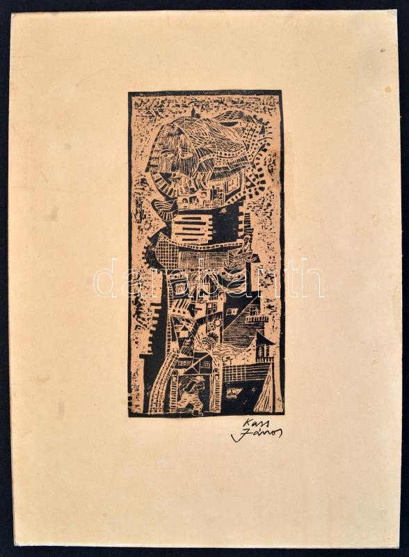 Kass jelzéssel: Gépezet. Linómetszet, papír, kis szakadással, kartonra... https://www.darabanth.com/de/374-Fernauktion/374.0/Gemalde-und-Grafiken/Gemalde-und-Grafiken~1/Kass-jelzessel-Gepezet-Linometszet-papir-kis-szakadassal-kartonra-kasirozva-25-5x12-cm~II2169595