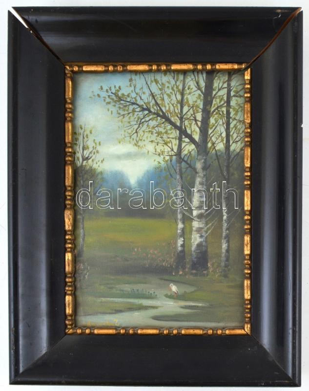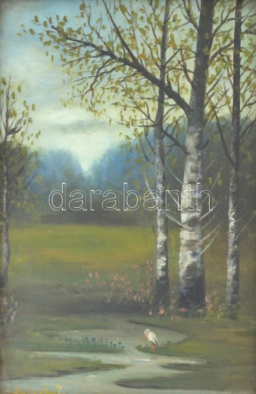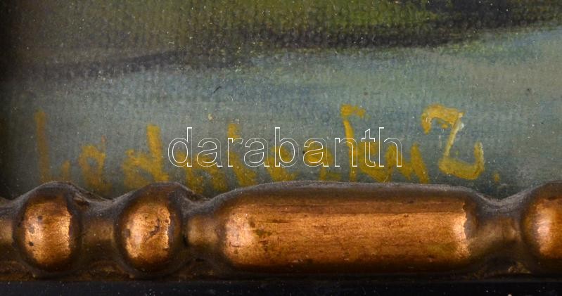 Beschreibung: Ledniczky Z, jelzéssel: Gólya. Olaj, karton. Díszes, üvegezett, sérült fa keretben, 30×20 cm